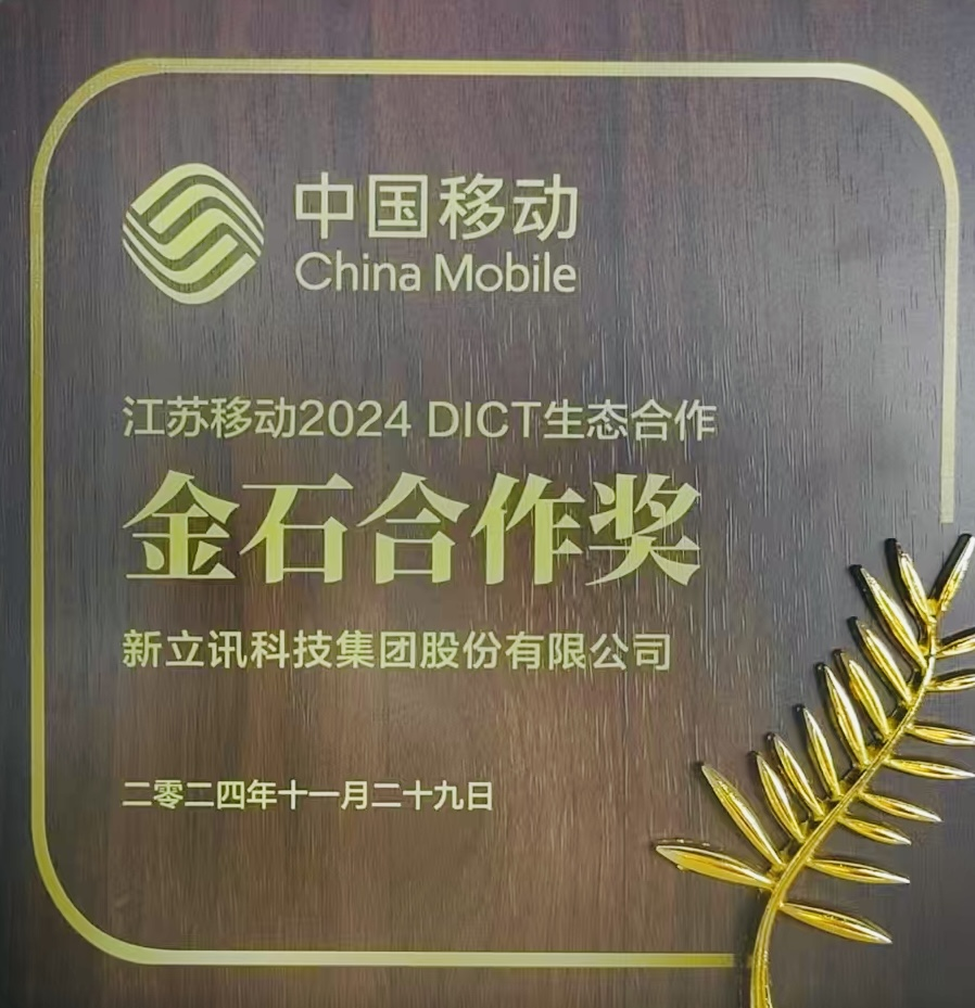 2024年11月29日,中國移動江蘇公司召開“2024 DICT生態合作大會”,來自行業領軍企業、高校、科研院所等DICT產業核心業態的全省百余家單位代表共話“AI賦新生、低空啟新航”,共繪新質未來。新立訊科技集團獲“DICT生態合作金石合作獎”。