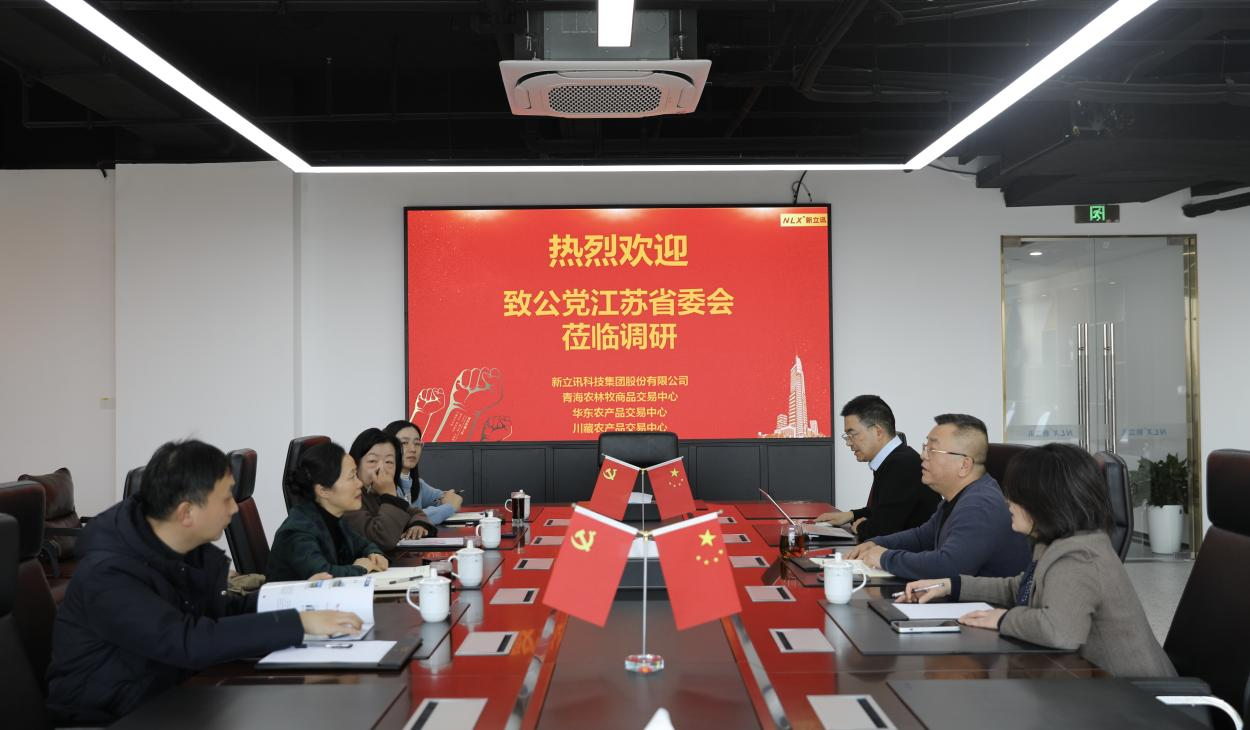 2026年1月22日,江蘇省政協(xié)副秘書長、致公黨江蘇省委會專職副主委高健,致公黨江蘇省委會宣傳社服處處長卓寧,致公黨江蘇省委會宣傳社服處副處長王運武等蒞臨新立訊總部調研。新立訊科技集團董事長(兼青海、華東、川藏農(nóng)產(chǎn)品交易中心董事長)毛霖(致公黨黨員)、常務副總經(jīng)理李偉、西部優(yōu)選電商總監(jiān)李積鑫陪同調研。